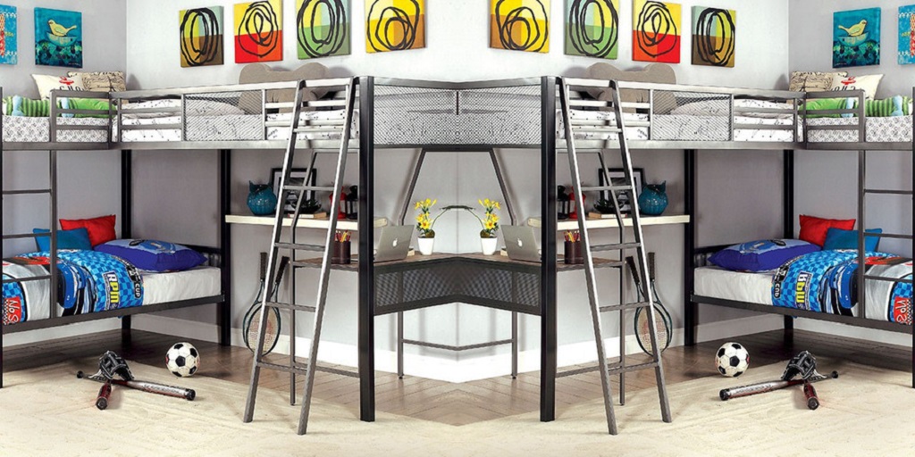 Additionally, you may want to think about whether you want a standard bunk bed for your kids, with two beds stacked, or a loft bed with a single bed on top and space underneath it for a desk or additional storage space.