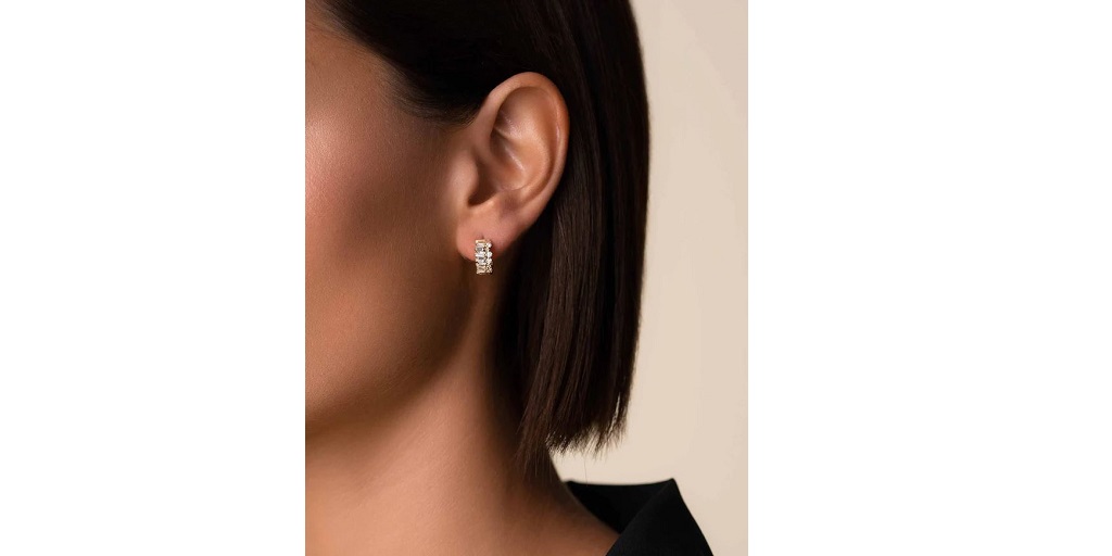 The hoops are encrusted with baguette-cut diamonds that shimmer in the light. They are versatile and can be worn with any formal outfit, from a little black dress to a ball gown.